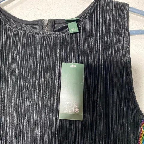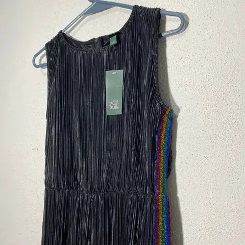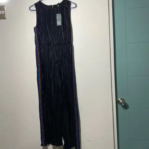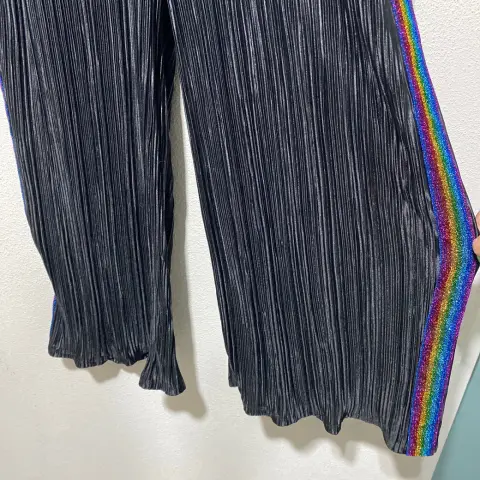 Palazzo negro Nuevo padrisimo. Es un palazo negro tela brillante tipo plisado a los lados tiene detalles tipo arcoíris caída padrisima es totalmente nuevo