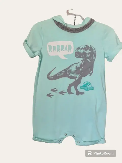 Pañalero bebé. Pañalero con gorro color menta, estampado de dinosaurio. Marca Jurassic World. Talla 12M