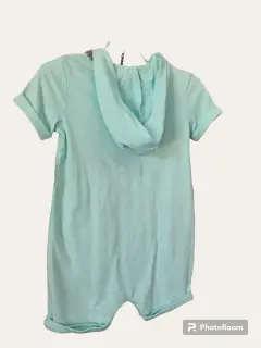 Pañalero con gorro color menta, estampado de dinosaurio. Marca Jurassic World. Talla 12M