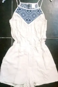 Romper dress. vestido con short debajo, color beige con detalles color azul marino...