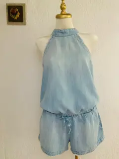 ROMPER HALTER MEZCLILLA. Nomás vean esta belleza 🤩 modelo exacto al de las primeras fotos, la parte de arriba es amplia pues creo que el modelo es así …. Tiene 48cm de axila a axila