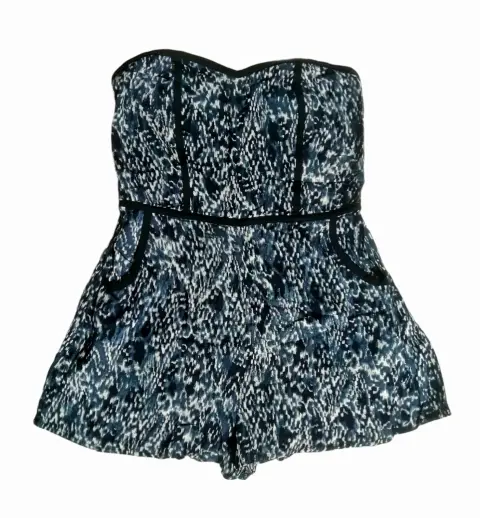 Romper strapless ✨. Hermoso romper en colores gris azulado y negro🩶Esta hermoso y hace linda figura🩶Tiene bolsillos a los costados del short y la parte de arriba es strapplesTalla M💖