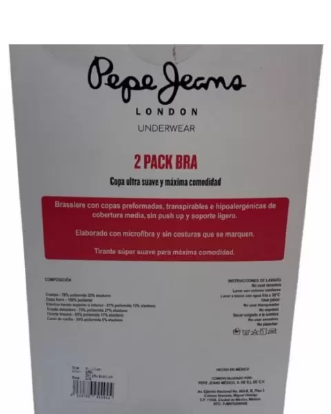 2Pack Brasiere Pepe Jeans Nuevo en caja, paquete con 2 piezas (Blanco/Rosa) Talla 36B, nuevos en caja.