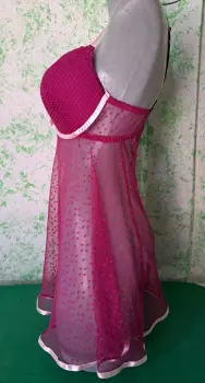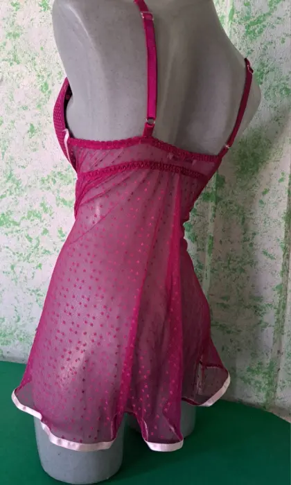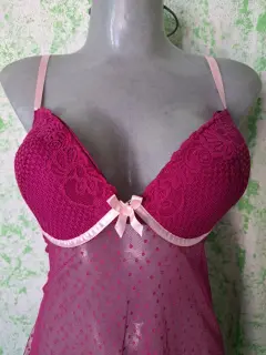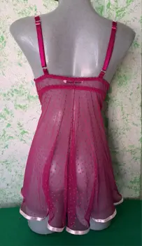 Baby doll morado grande. Hermoso y sexy baby doll morado de caída suelta, con detalles de listón rosa que le dan un toque romántico, es talla grande, se encuentra en perfecto estado, Marca Andrea Kristoff for Scanté, ( incluye tanga del mismo color).