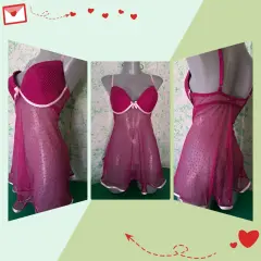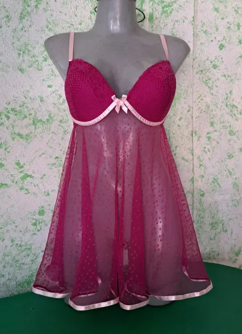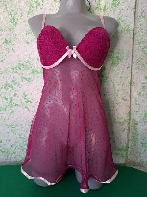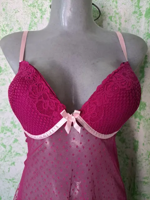Hermoso y sexy baby doll morado de caída suelta, con detalles de listón rosa que le dan un toque romántico, es talla grande, se encuentra en perfecto estado, Marca Andrea Kristoff for Scanté, ( incluye tanga del mismo color).