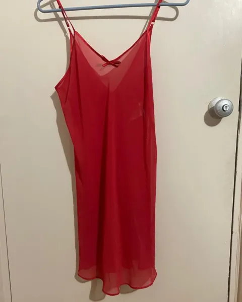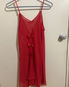Baby doll rojo semitransparente talla M. Descripción:Hermoso y sexy baby doll de moñitos talla chica da a mediana también con tirantes que se ajustan, sin detalles. La talla dice chica pero queda a M también