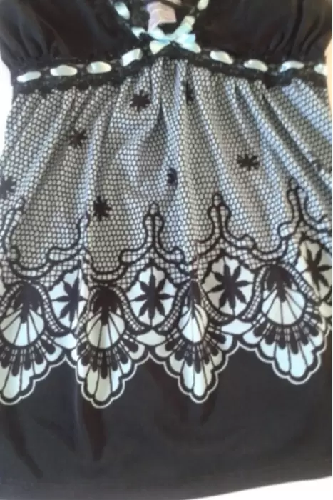 Sexy Baby Doll .Color Azul cielo con negroTalla LHecho en CambodiaListòn y encaje en contorno al busto.(en la parte de abajo donde esta el color azul es como impresa la tela con efecto encaje pero eso la hace durable a diferencia del tul).Con tirantes ajustable.90%Polyester 10% Spandex.En muy perfectas condiciones .Y te esta esperando.