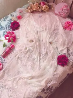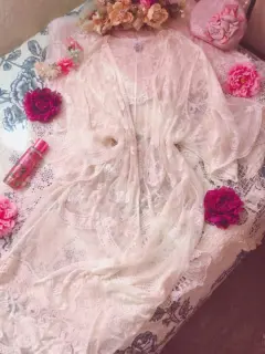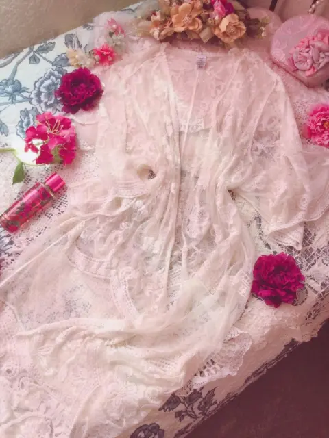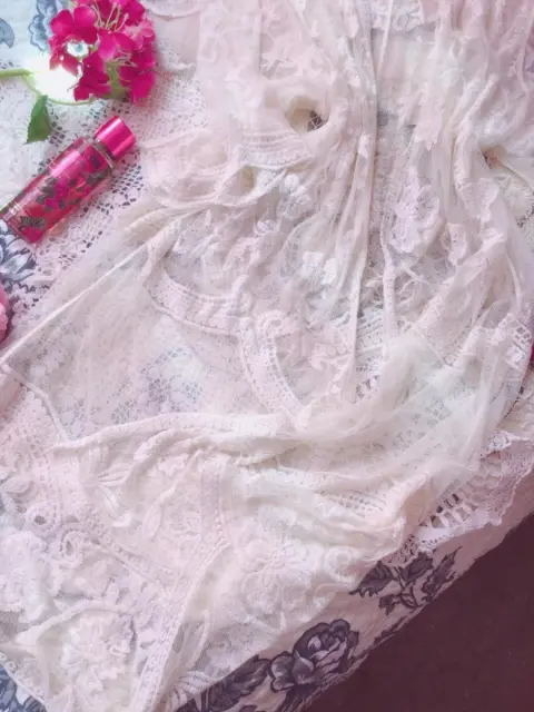 Linda y bella bata de encaje bordado color beige, con mangas 3/4,largo a pantorrilla, es para XL y 2XL,sin detalles ni roturas. Por favor checar bien las fotos para evitar devolución o calificación no concordante a mi descripción. Envíos los lunes ❤️