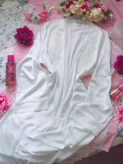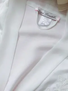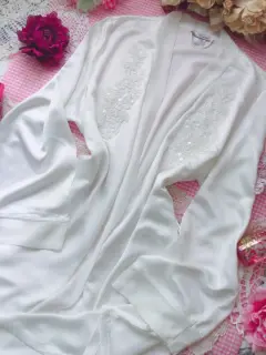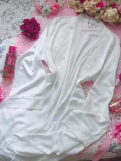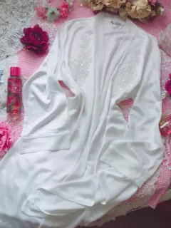 Linda y bella bata de satín color blanco, con mangas largas y bordado de flores y perlitas frontal, sin cinta para ajustar cintura, 2 cintas interiores, sin detalles ni roturas. Por favor checar bien las fotos para evitar devolución o calificación no concordante a mi descripción. Envíos los lunes ❤️