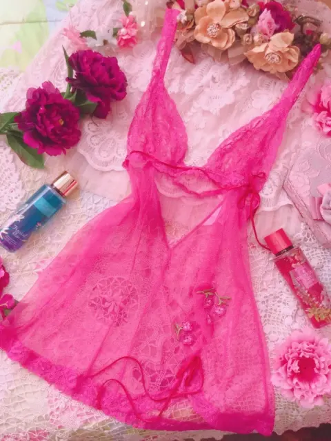 Lindo y bello camisón teddy de encaje color fiusha, transparente, con tirantes ajustables broche trasero, flores bordadas, sin detalles ni roturas. Por favor checar bien las fotos para evitar devolución o calificación no concordante a mi descripción. Envíos los lunes ❤️