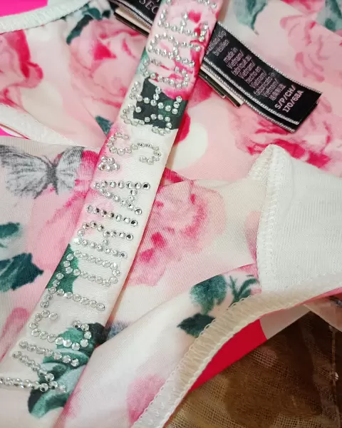 Hermoso bikini Victoria's Secret!!Original y nuevo con etiquetas!!Línea Very Sexy Shinne!!Hermoso diseño de cristales en costados con nombre d la marca súper sexy corte brasileño!!Disponible talla S!! Tonos de temporada diseño floreado!!Hey!! Para más tallas y modelos te invito a mi clóset con gusto resuelvo cualquier duda!!