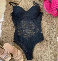 Body Negro de encaje talla S. Body Negro de encaje talla S, se puede acomodar de la parte de abajo, la copa puede llegar a una 36 o un poco más, los tirantes se ajustan. Sin detalles. Nuevo a estrenar sin etiqueta. Si te gustan mas prendas puedo armarte un paquete. ENVIOS, LUNES, MIÉRCOLES Y VIERNES. Que no te lo ganen !