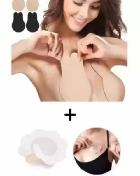 Bra adherible + par de pezoneras. Bra adherible para copa B C y D, disponible en color nude y negro, son reutilizables.