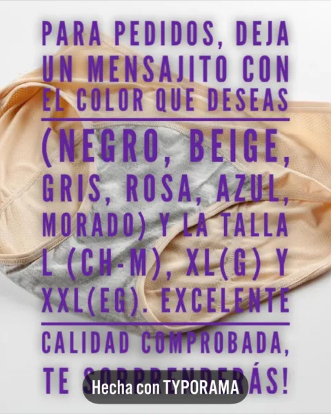 Las mejores braguitas menstruales, son súper suavecitas, comodas, y funcionan 100%. Los materiales son excelentes y lo mejor es el precio. Tallas L(ch-m) XL(G) XXL (EG). Garantía de funcionamiento y calidad. Te sorprenderas!