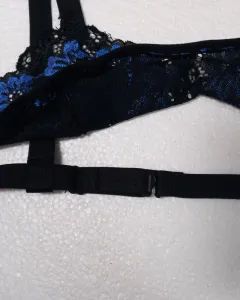 Padrisimo bralette negro con encaje azul.Sin relleno ni varillaTe interesa otra talla ?Manejo copas b a ddY tallaje de 32 a 40 .Envio discreto.