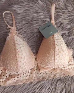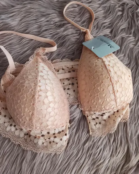 Brallette Color beige de encaje, unitalla Abarcan 30-36, con noche en frente.
