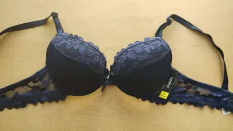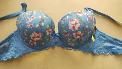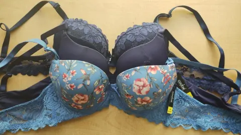 Tres comodisimos brasieres talla 34 b , además su copa moldeable hace que se mire un busto firme , en diferentes tonos de azules