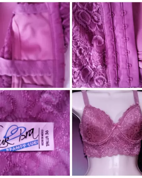 Lindo brasier color lila de encaje suave ancho de la espalda dice talla 36 pero queda a 38