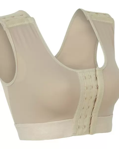 Brasier especializado post quirúrgico. Bra con tricorchete de ajuste frontal que se adapta gradualmente al volumen del busto y las necesidades fisiológica de cada mujer. Broche tricorchete en el hombro con dos niveles de adaptación para ajustarse a la altura de cada mujer y evitar molestias en la zona. Confeccionado en telas especializadas de alta densidad que proporcionan soporte y comodidad al busto. DISPONIBLES EN TALLA S,M,L XL.