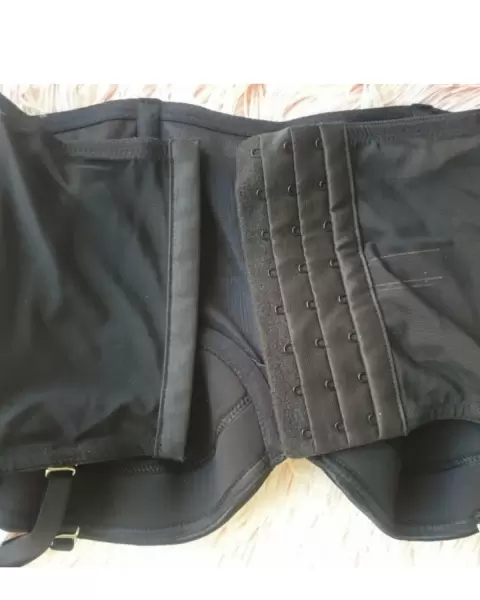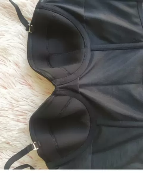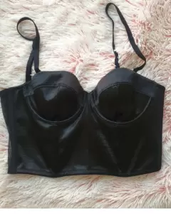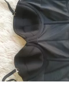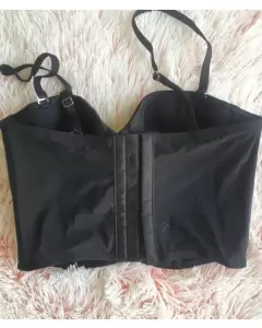 Brasier tipo corset negro. Es un brasier tipo corset corto , la parte de atras viene transparente , tiene para abrocharse para varias medidas , los turantes ajustables. Es talla 32B a mi parecer la copa viene mas pequeña. Nunca se uso porque no me quedo
