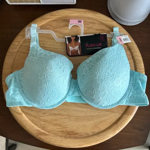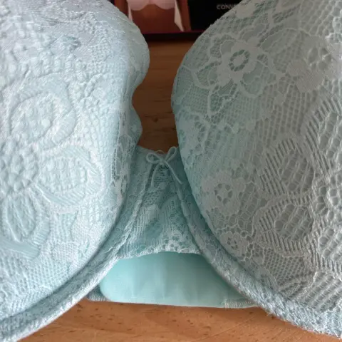 Brasiere turquesa con encaje 40D. ✅hermoso Brasiere color azul✅con encaje✅nuevo con etiqueta 🏷️✅sin detalles✅talla 40D✅con varillas✅con push up✅aprovecha Super precio