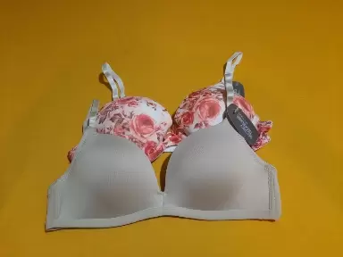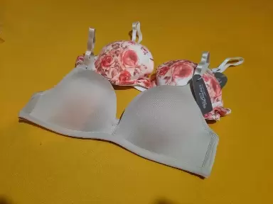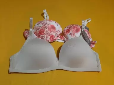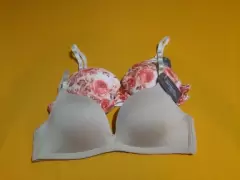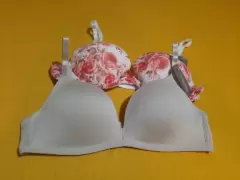 Brasiers. Paquete de 2 brasiers en talla 34 -B en color beige y blanco con flores, el brasier beige es sin varillas y push up