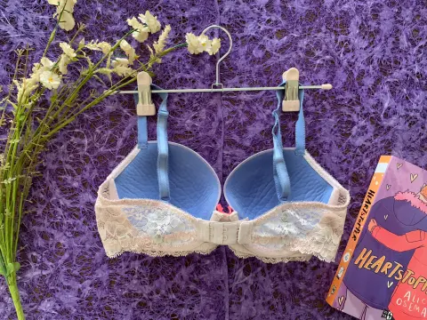 Brassier en tela y encaje. 🩵Talla 32D Victoria's secret 🎀🤍Sin push🩵Encaje en tornasol bello, bello🤍Nuevo sin etiqueta 🏷️ 🩵Tirantes ajustables ✨Publico en más lugares y se puede vender sin previo aviso✨Hago envíos los sábados antes de las 11am