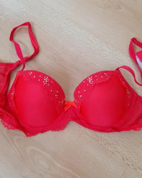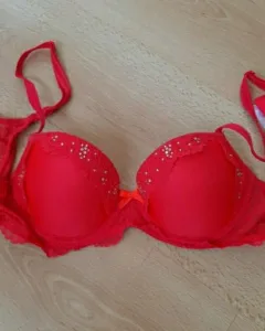 Brassiere rojo intenso de Victoria Secret, talla 34B, con destellos brillantes, push UP. Te encantará!