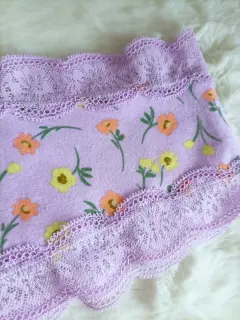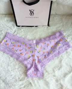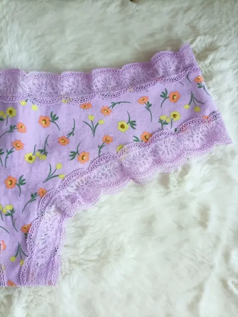 Hermoso cachetero PINK!! Original y nuevo!! Tejido en algodón inserción de encaje en orillas súper sexy y muy suave hermoso diseño de🌼 floresitas, en fondo tono lila!! Talla L!! Para más tallas y modelos visita mi clóset!! Con gusto resuelvo cualquier duda!!