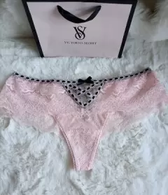 Cachetero rosa encaje Victoria's Secret. Luce increiblemente sexy con este hermoso cachetero Victoria's Secret!! Línea Dream Angels!! DHermoso diseño en encaje rosa muy suave y sexy detalle de listón negro entrelazado!!Disponible talla S!! Para más modelos disponibles consulta mi clóset!! Con gusto resuelvo cualquier duda!!
