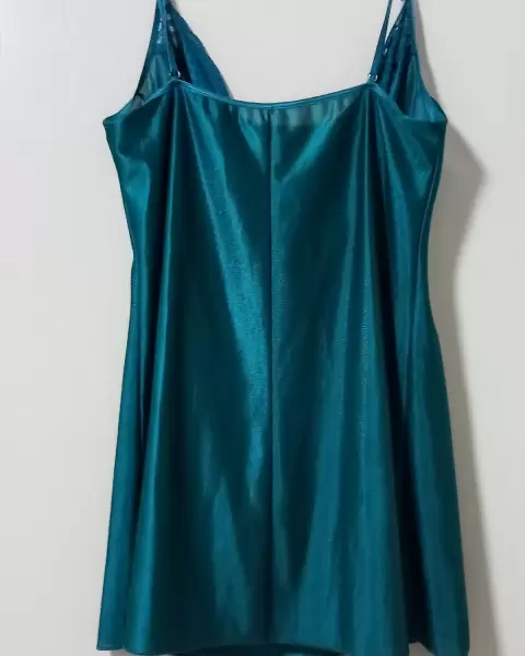 Hemoso camisón camisón color turquesa, la tela es muy agradable parece satín por el brillo pero es otro tipo de tela, está super coqueto, tiene tirantes ajustables llega arriba de la rodilla.Es talla chica pero también puede quedar a mediana.¡Gracias por visitar mi closet!