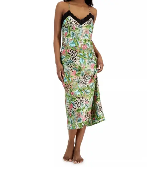 🌻 Camisón de lencería con estampado tipo tigre💚😍🌻Libera tu lado salvaje con este camisón súper chic de INC International Concepts Intimates con un romántico ribete de encaje.🌻 Largo: llega hasta el tobillo 🌻Espalda en V profunda con ribete de encaje 🖤 escote cuello en V con ribete de encaje 😊🌻 Tirantes finos ajustables entrecruzados en la espalda 😍 🌻Tela 100% poliéster 🙂