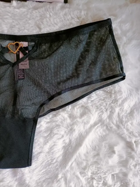 Luce increíblemente sexy con este hermoso Cheeky Victoria's Secret!! Original y nuevo!!Tejido en mesh súper suave y cómodo no se marca tono negro intenso lindo detalle de corazón en dorado queda como la modelo!!Talla XL!! Para más tallas y modelos visita mi clóset!! Con gusto resuelvo cualquier duda!!