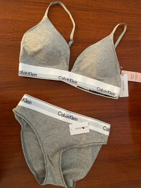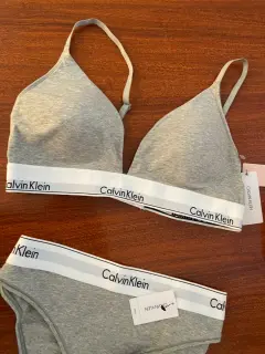 Conjunto ck gris. Súper básico Bonito y cómodo Pantie talla XLBrallete XL con copas incluidas ✨🩶