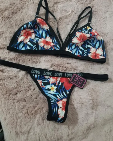 Hermoso coordinado de bralette y tanga de colores padrisimos completamente nuevo queda a tallas S y M y el bra 32, 34 y 36B. Animate están hermosos te encantarán.