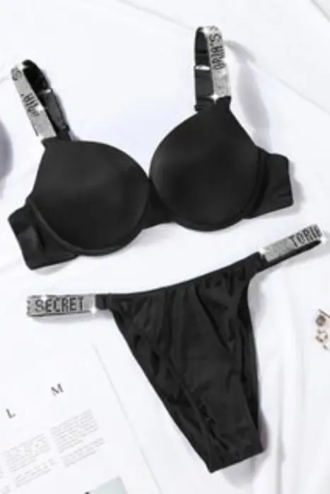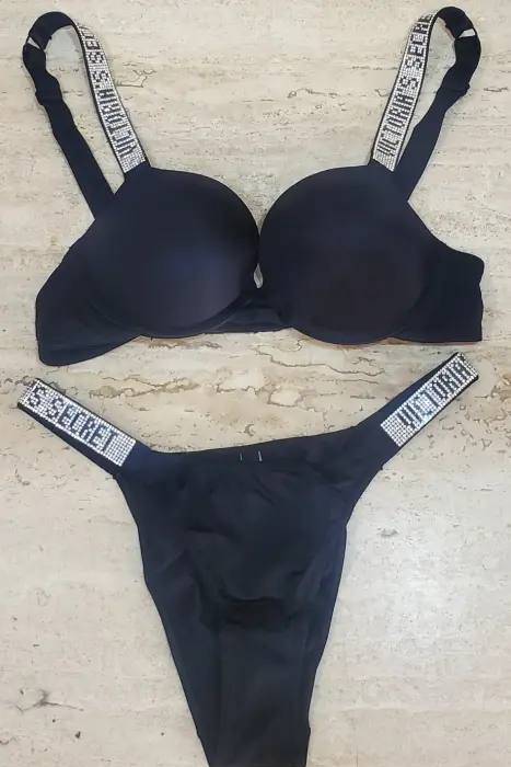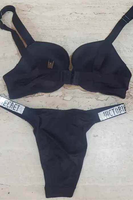 Coordinado Victorias Secret , super coqueto , color negro con plateado , es talla 34B EUA o M . Se vende solo junto.
