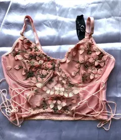 Corset rosa de encaje. Corset rosa de encaje totalmente nuevo talla S, los hilos de cada lado hacen que se ajuste totalmente ala figura del cuerpo, la tela es tipo red transparente rosa a los lados y atrás y de frente es licra rosa con flores de encaje