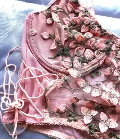 Corset rosa de encaje totalmente nuevo talla S, los hilos de cada lado hacen que se ajuste totalmente ala figura del cuerpo, la tela es tipo red transparente rosa a los lados y atrás y de frente es licra rosa con flores de encaje
