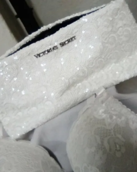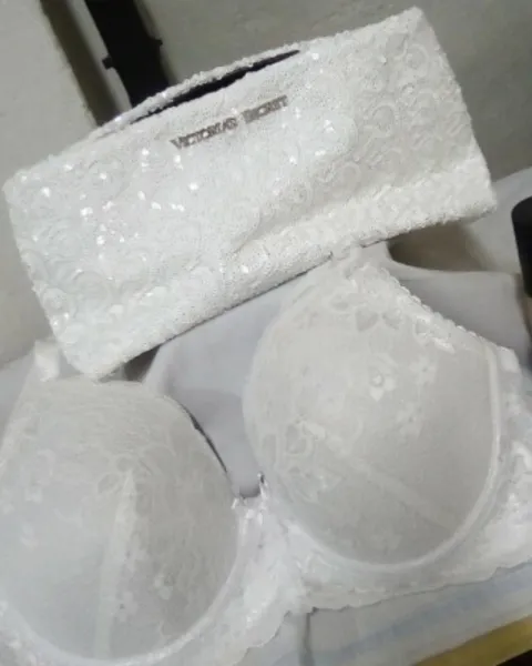Cosmetiquera victorias'secret y brasier carnival. Paquete de cosmetiquera victorias'secret y brasier Carnival. Cosmetiquera con chaquira blanca la puedes ocupar hasta como bolsa de noche está linda el brasier es Carnival blanco con encaje talla 38 B muy coqueto