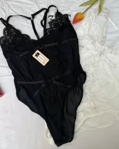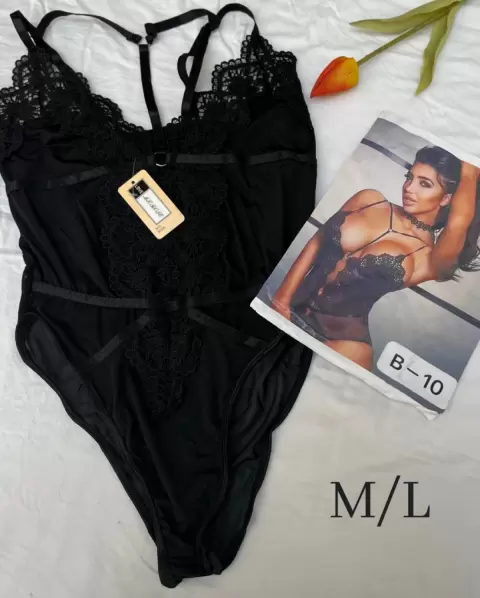 El body es escotado en V con encaje grueso y arnés a la garganta en V es de malla transparente.Maraca: Love (viene con etiqueta)Talla: Unitalla M/L ( tengo varias piezas disponibles)Composición: 85% poliéster y 15% elástico Precio: $350