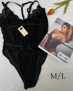 Hermoso Body de encaje negro. El body es escotado en V con encaje grueso y arnés a la garganta en V es de malla transparente.Maraca: Love (viene con etiqueta)Talla: Unitalla M/L ( tengo varias piezas disponibles)Composición: 85% poliéster y 15% elástico Precio: $350