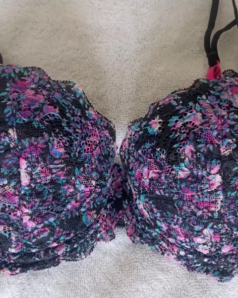 ⭐Tela muy comoda, copas en tela comoda, soporte bueno⭐Tela de Encaje con estampado Floreado Color Negro, Rosa, Verde, Morado y Fondo interno Rosa⭐Talla 36C por medidas viene sin la etiqueta de la talla⭐Los tirantes traen la funcion de hacerse cruzados o normales💥❗ACEPTO OFERTAAAS QUIEN SE ANIMA❗💥