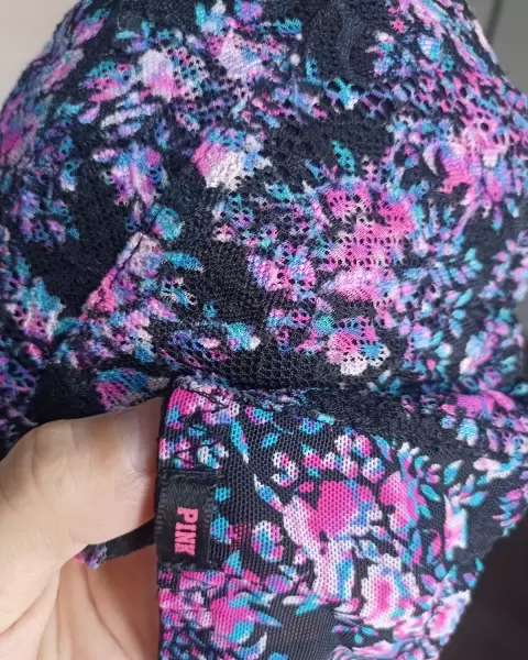 Hermoso BRASSIER PINK💜🐕. ⭐Tela muy comoda, copas en tela comoda, soporte bueno⭐Tela de Encaje con estampado Floreado Color Negro, Rosa, Verde, Morado y Fondo interno Rosa⭐Talla 36C por medidas viene sin la etiqueta de la talla⭐Los tirantes traen la funcion de hacerse cruzados o normales💥❗ACEPTO OFERTAAAS QUIEN SE ANIMA❗💥