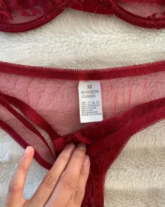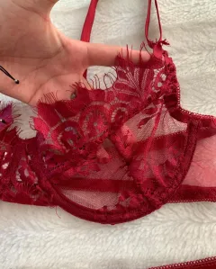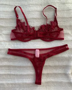 Lencería de encaje vino. Detalles de encaje en copas del brasier y parte de adelante de la tanga, lo demas es transparente… Medidas cinrcunferencia del brasier 70-90cm, y de la tanga 78-100cm, estira bastante la parte de abajo puede quedar a G.