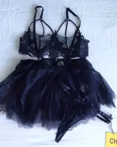 Lencería negra de encaje. Preciosa lencería de encaje. Queda a una talla S o M, pero solo copa B. Completamente nuevoCualquier duda pregúntame :)PD. no hago envío urgentes a menos que acordemos antes de que hagas la compra.