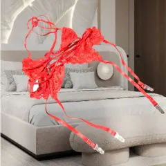 Liguero de 2-Piezas Red Sky, talla EG, color rojo sólido, contiene 1. Brassier con tiras al hombro/cuello y 1. Liguero ajustable de encaje, tirantes y listones ajustables, agarraderas para medias con cierre de precion, hecho de algodón y poliéster, la prenda que necesitas en tu coleccion, nuevo a estrenar con etiqueta en buen estado cosmetico.