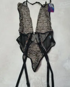 Liguero Sexy. Body con liguero, tela animal print. Marca talla M pero le va mejor a una S