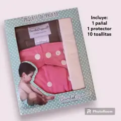 Pañal reusable / ecológico. Paquete de prueba incluye:1 pañal1 protector absorbente10 toallitas de bambú biodegradables