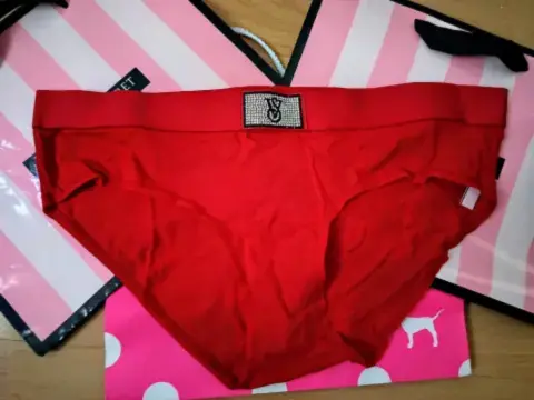 Panty bikiny pedrería. Rojo Nuevo con etiqueta Monograma en pedrería