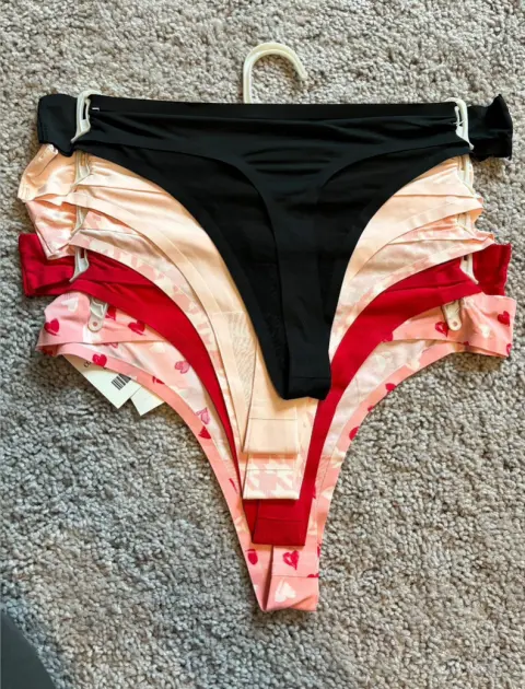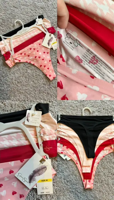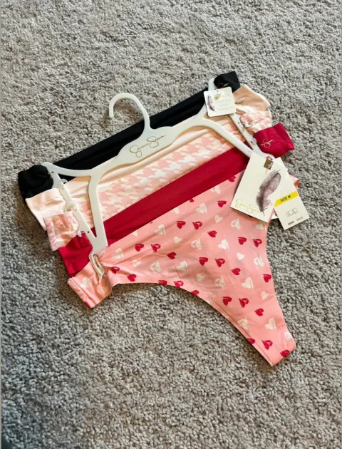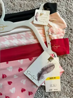 Paquete de 5 tangas talla M marca Jessica Simpson. Son muy delgaditas para que no se marquen en la ropa. 90% nylon 10% spandex. Tela suave y elástica.Nuevas 🏷️Productos importados 🇺🇸Escucho ofertas razonables 🙏🏻💲